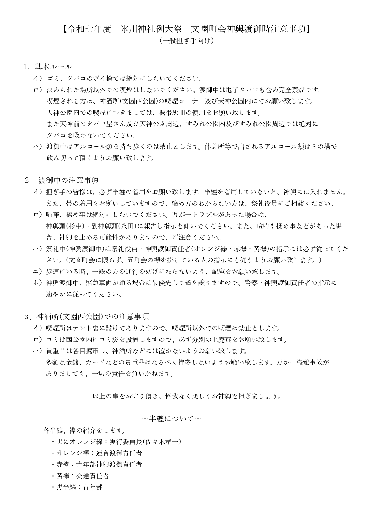 『令和7年度文園町会神輿渡御に関する注意事項』